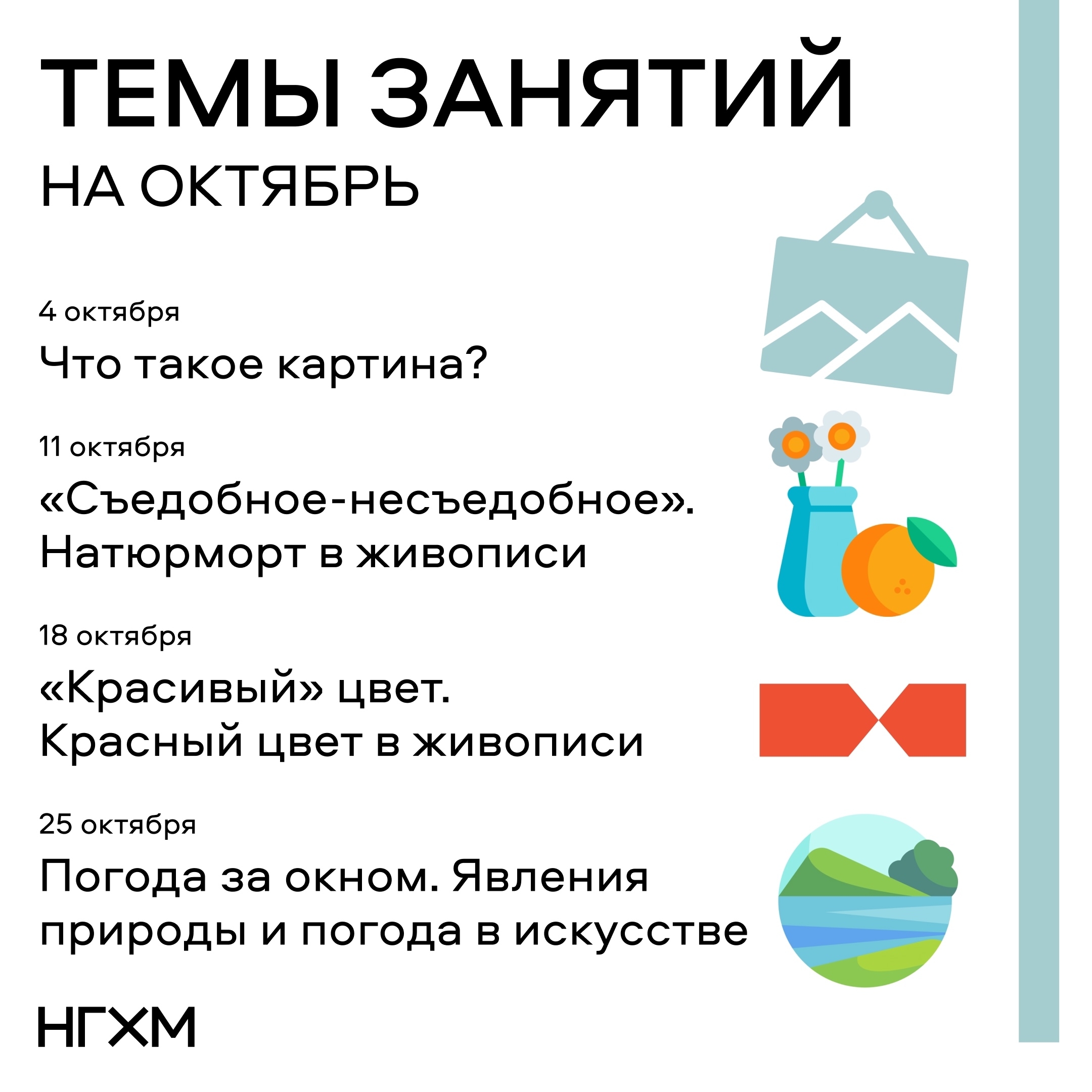 Дорогие друзья! Публикуем расписание занятий в изостудии для самых маленьких на октябрь. Сохраняйте себе карточки-напоминалки и приходите в музей!