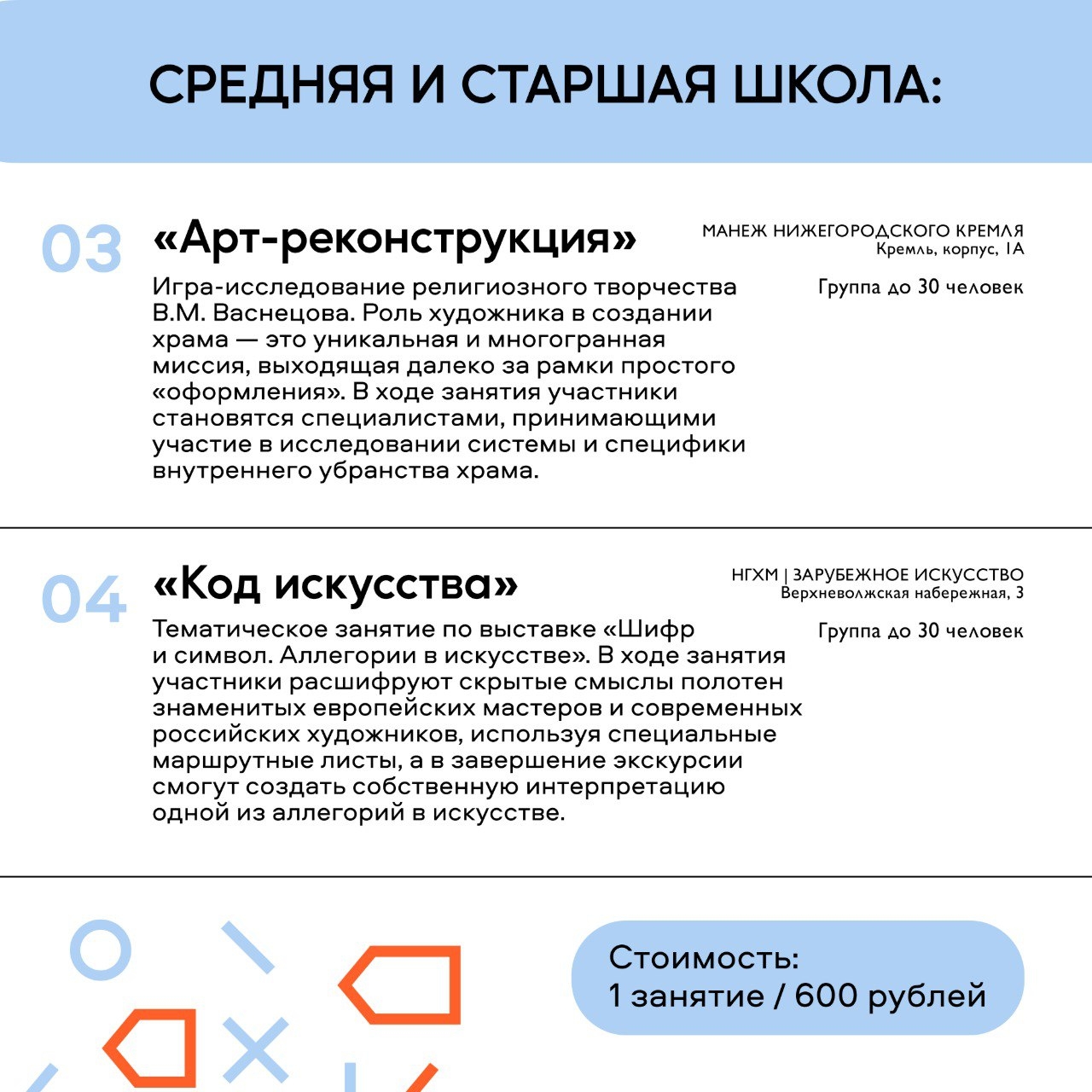 В нашем музее учиться интересно – уроки проходят среди настоящих шедевров, а вместо привычных лекций — интерактивные истории, творческие лаборатории и музейные квесты.