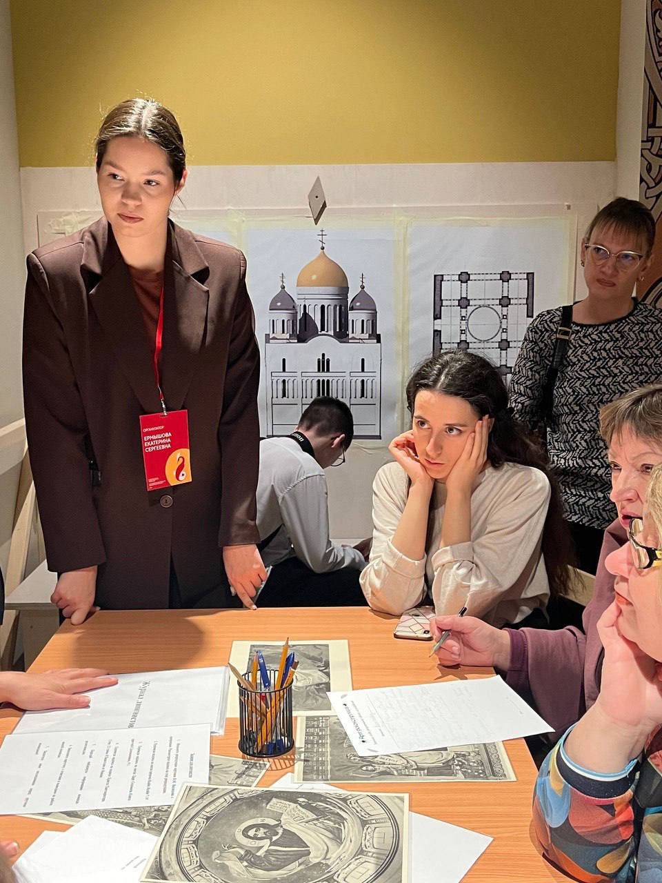 Первый день работы конференции был насыщен событиями, демонстрирующими практическую роль музея в современном образовании. Участники посетили Манеж Нижегородского кремля, где познакомились с интерактивной игрой-исследованием «Арт-реконструкция», разработанной сотрудниками НГХМ для детской и молодежной аудитории по выставке «Виктор Васнецов. Радость праведных. Религиозная живопись и графика».