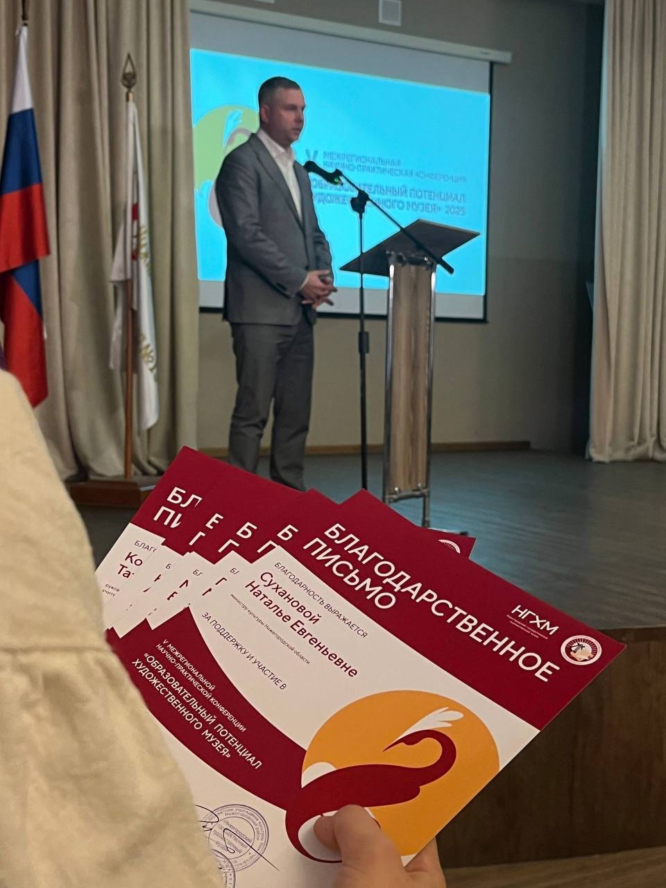 «Мы приезжаем на эту конференцию не впервые, и каждый визит в Нижний Новгород наполняет новыми смыслами и вдохновением. Особенно ценно, что здесь можно встретиться с единомышленниками, обменяться опытом и увидеть, как идеи музейного и образовательного сообществ соединяются. То, что мы сегодня увидели, обязательно найдёт отражение в наших будущих проектах и уроках. Ведь именно такие встречи помогают всем нам вместе формировать единое духовно-нравственное пространство для подрастающего поколения. Через живой диалог с искусством мы воспитываем личность, а через личность — строим сильное и осознающее свое наследие общество», - рассказала педагог гимназии № 2 (г. Екатеринбург) Татьяна Кочубей.