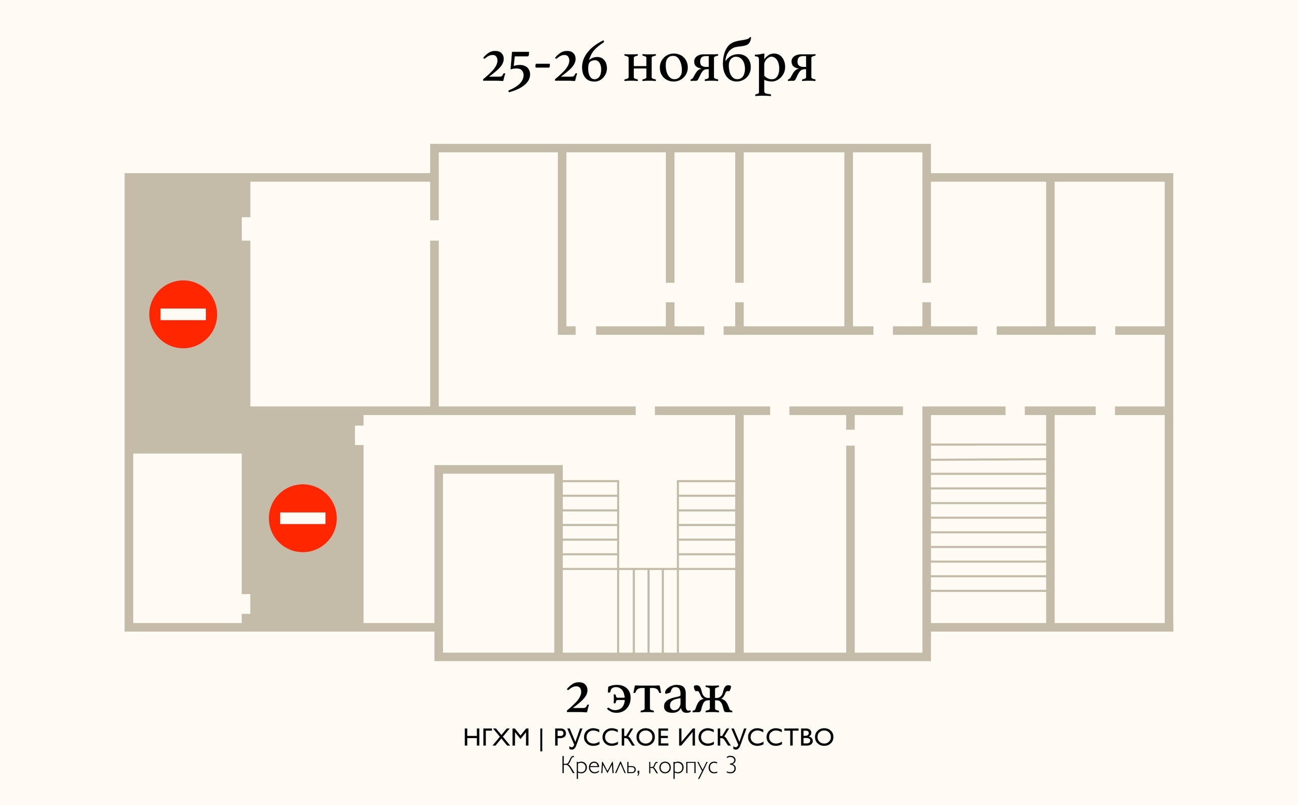 Обращаем ваше внимание на то, что 25 и 26 ноября 2025 года для посетителей будут закрыты залы №11 и №13 на 2 этаже НГХМ | РУССКОЕ ИСКУССТВО (Кремль, корпус 3).