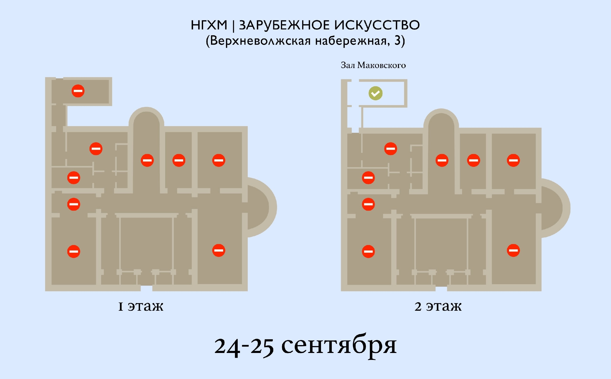 Обращаем ваше внимание, что сегодня 24 сентября и завтра 25 сентября в НГХМ | ЗАРУБЕЖНОЕ ИСКУССТВО (Верхневолжская набережная, 3) для посещения будет доступен только зал картины Константина Маковского «Воззвание Минина».