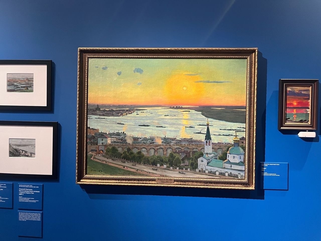 Главная метафора — Стрелка. Слияние Оки и Волги стало для нас отправной точкой в разговоре о рождении «гения места». В экспозиции живописные этюды художников XIX века перекликаются с личными историями ключевых фигур Нижнего Новгорода — Максима Горького, Ростислава Алексеева и других. Всё архитектурное решение выставки пронизано концепцией Слияния. Даже вид из окна Губернаторского дома на Стрелку вторит смыслам: реальный пейзаж становится полноправным участником экспозиции.