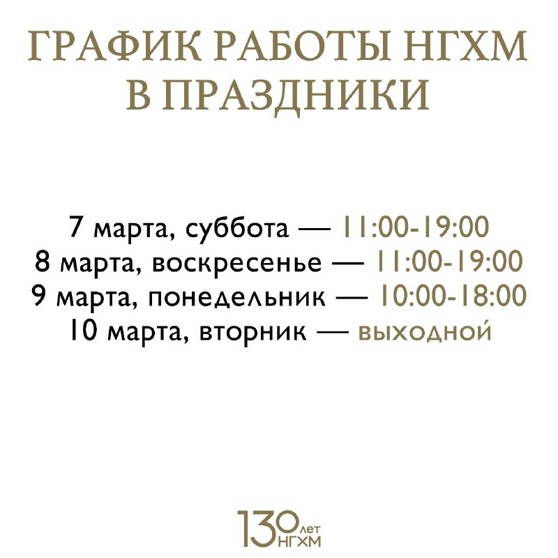 Впереди – длинные выходные. Которые в НГХМ пройдут как всегда насыщенно! Чтобы вы не потерялись в событиях и смогли все правильно распланировать, мы публикуем для вас афишу.