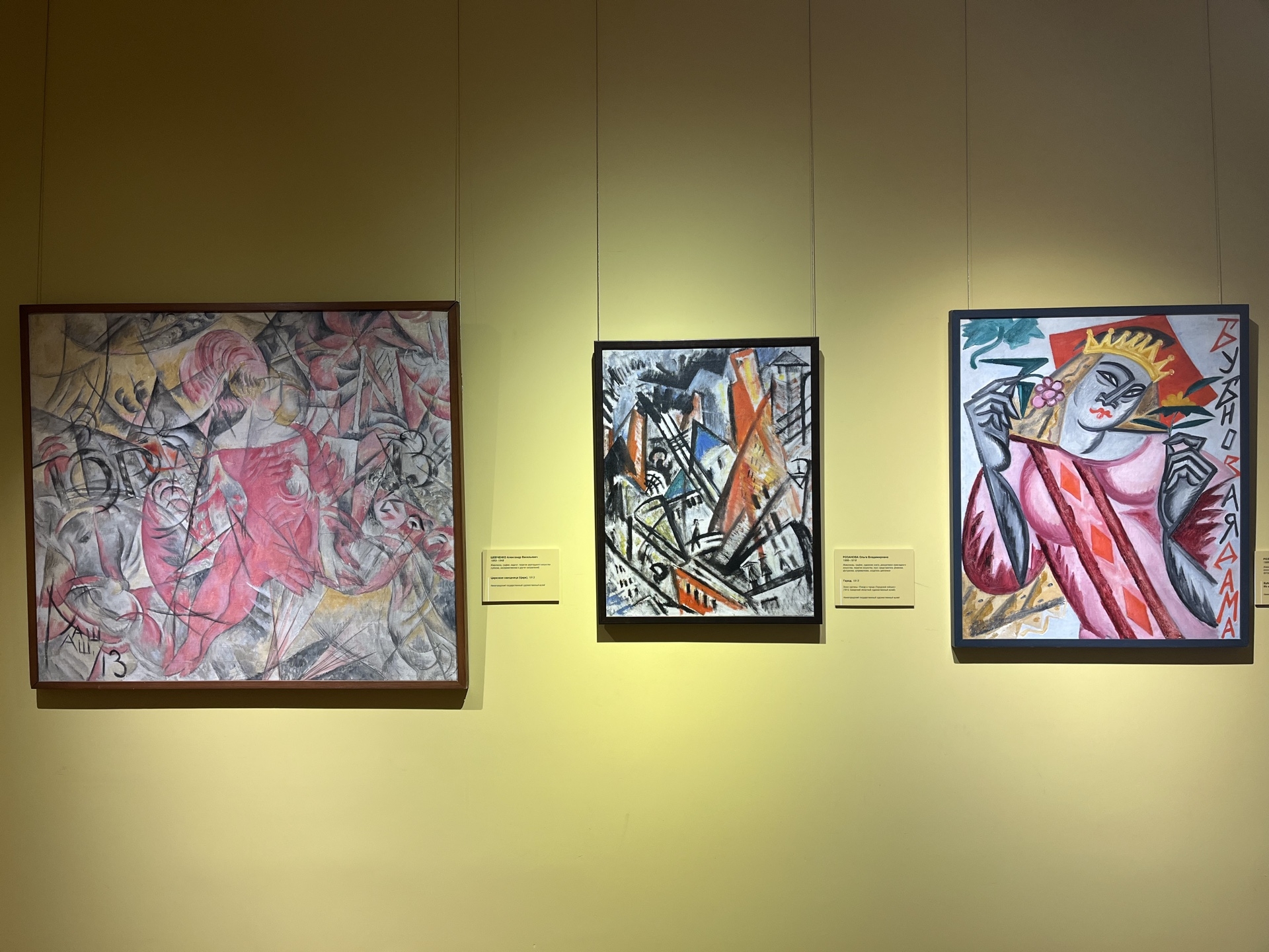 В трех анфиладных залах второго этажа демонстрируются живописные работы мастеров объединения «Бубновый валет» (П.П. Кончаловский, А.В. Лентулов, И.И. Машков, В.В. Рождественский, Р.Р. Фальк, А.А. Осмеркин), произведения русского периода Н.С. Гончаровой и М.Ф. Ларионова, в том числе широко известное полотно «Кацапская Венера» (1912). Завершают экспозицию работы представителей наиболее радикальных направлений русского авангарда (В.В. Кандинский, К.С. Малевич, А.М. Родченко, А.В. Шевченко, Л.С. Попова, О.В. Розанова, Н.А. Удальцова, В.Е. Пестель). Среди них такие знаковые произведения, как «Импровизация 4» (1909) В.В. Кандинского и этапное полотно К.С. Малевича «Косарь» (1911-1912). Дополняют экспозицию скульптурные работы С.Д. Лебедевой, Л.А. Франкетти, Д.Ф. Цаплина.