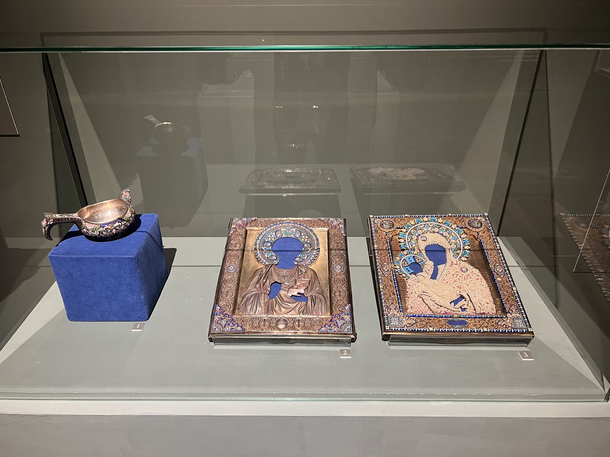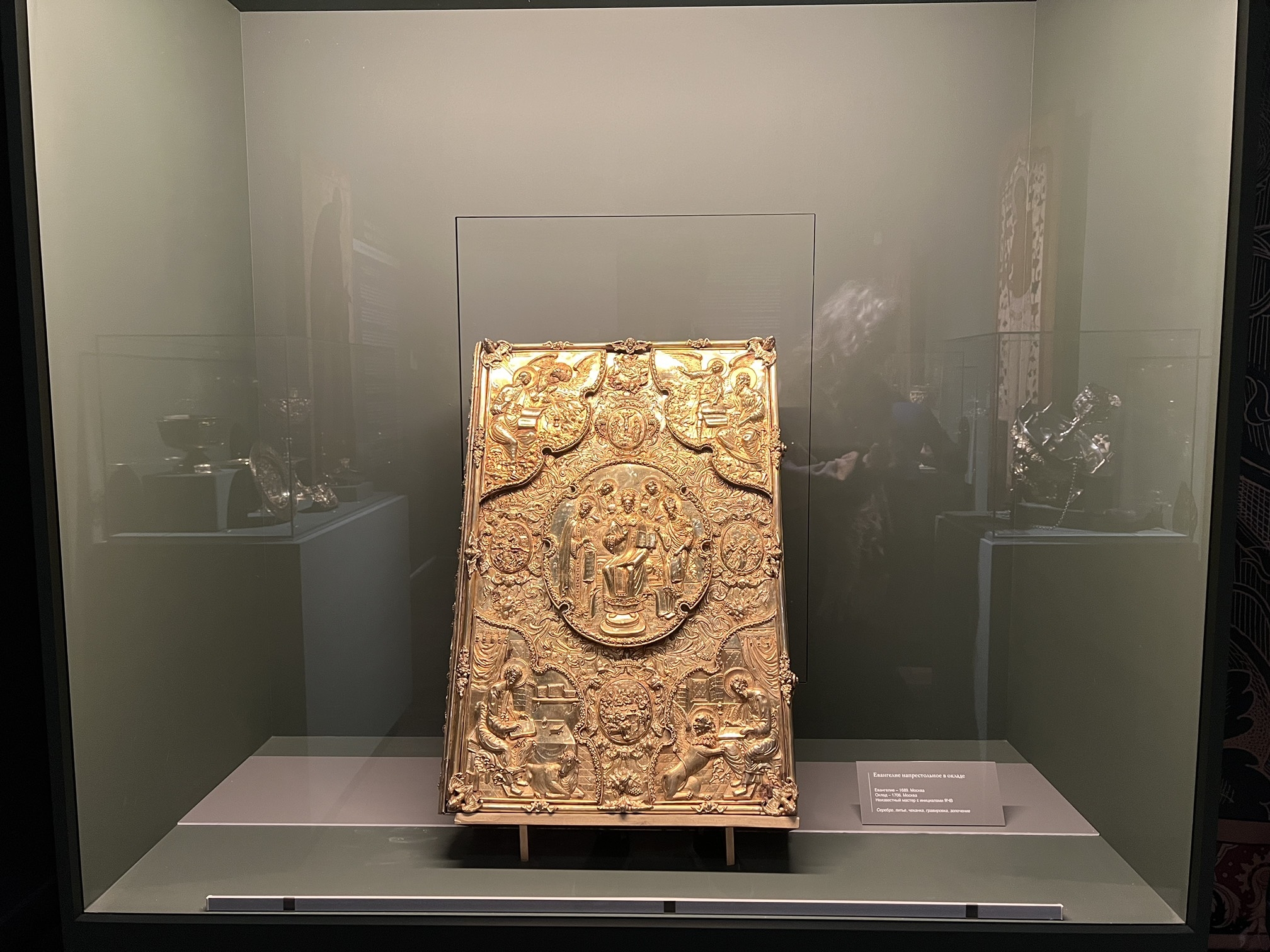 Центральное место в экспозиции XVII–XIX веков занимает большое напрестольное Евангелие в позолоченном серебряном окладе, выполненном в Москве в 1706 году. Оклад представляет собой яркий пример ювелирного искусства русского барокко. Вес экспоната – около 16 килограмм.