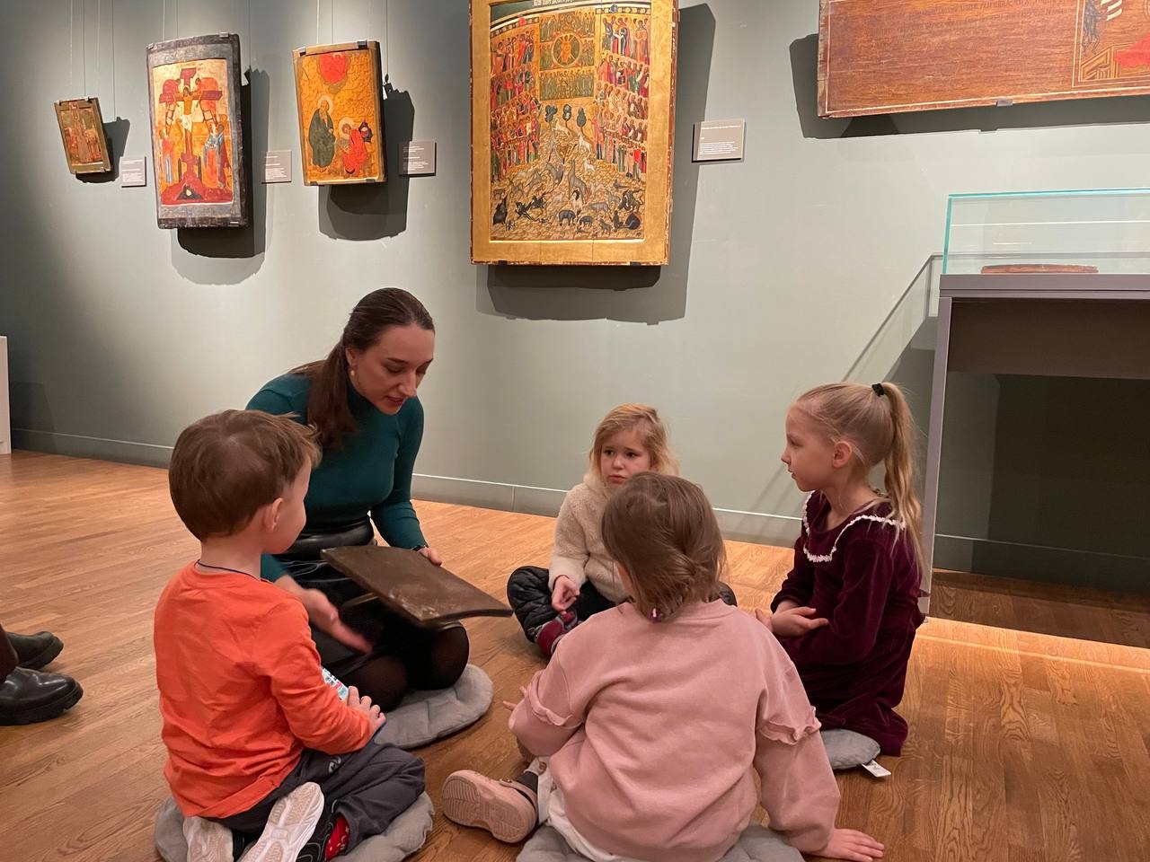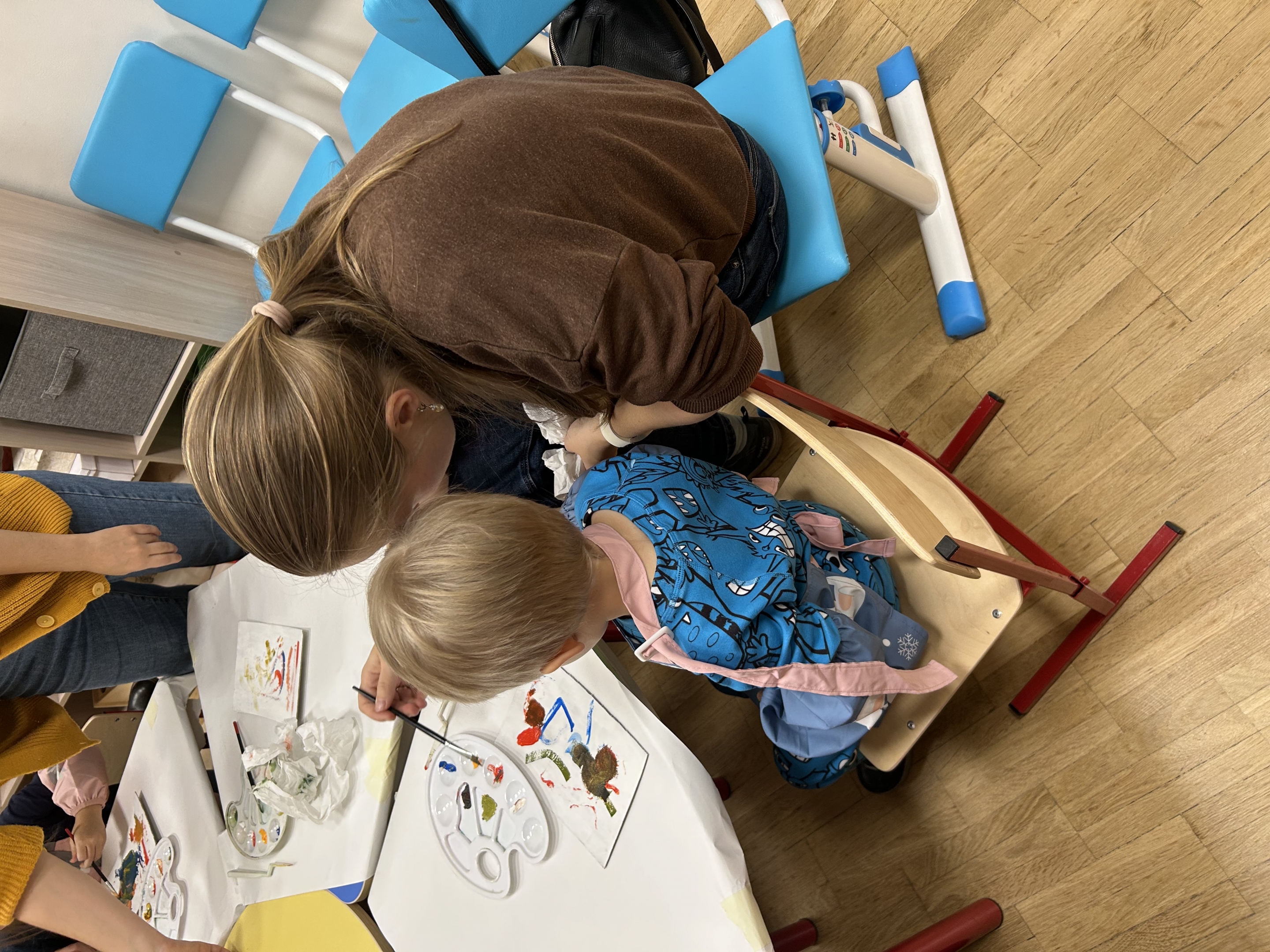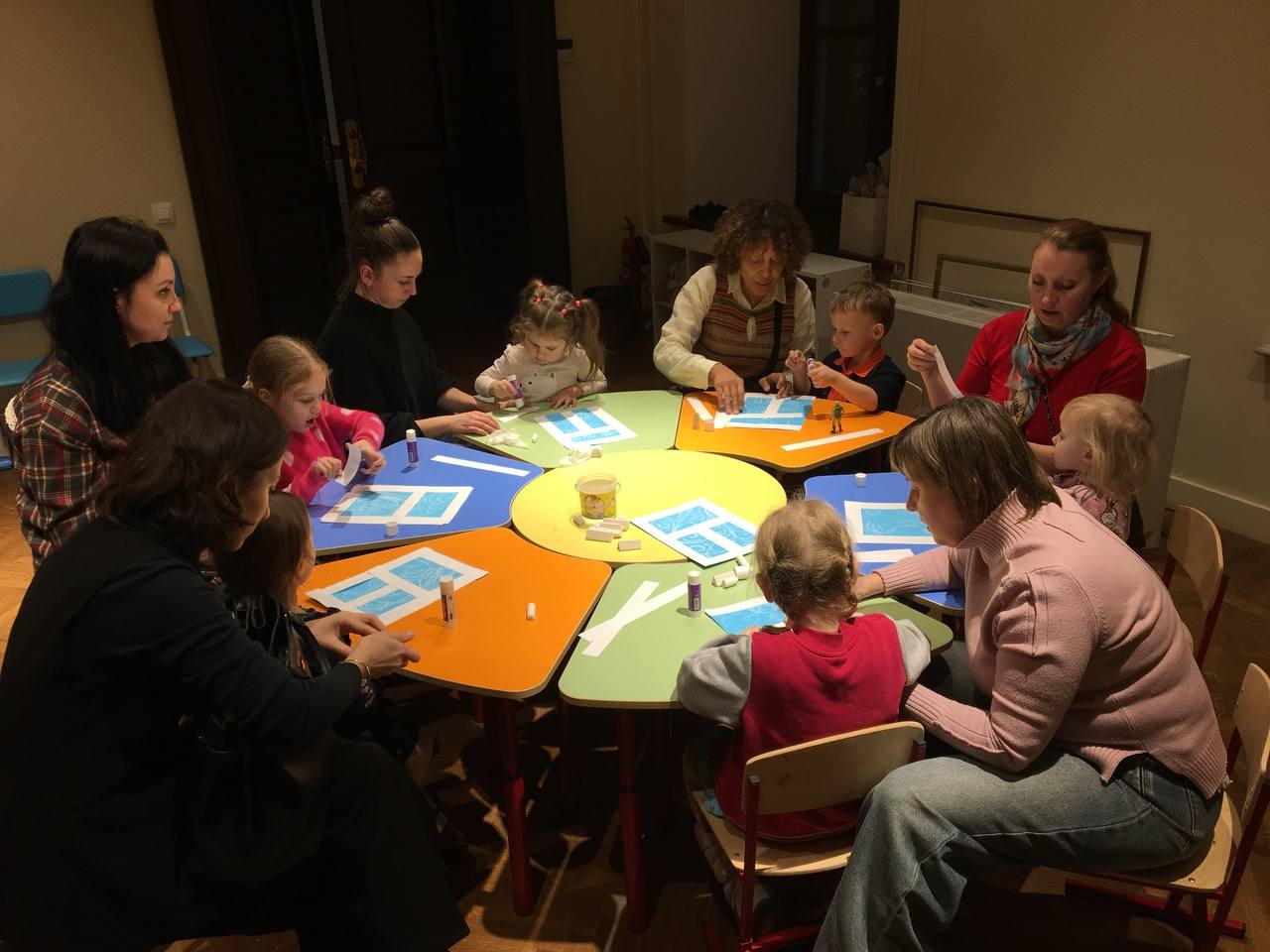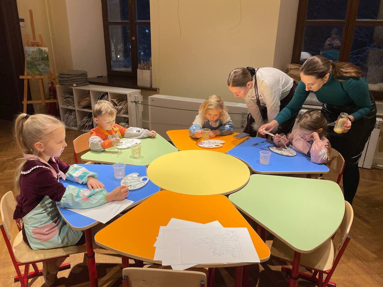 В изостудии для малышей маленькие посетители музея в компании мамы, папы, сотрудников музея и своих сверстников начинают знакомиться с искусством, узнают новое об окружающем мире и закрепляют уже известное.