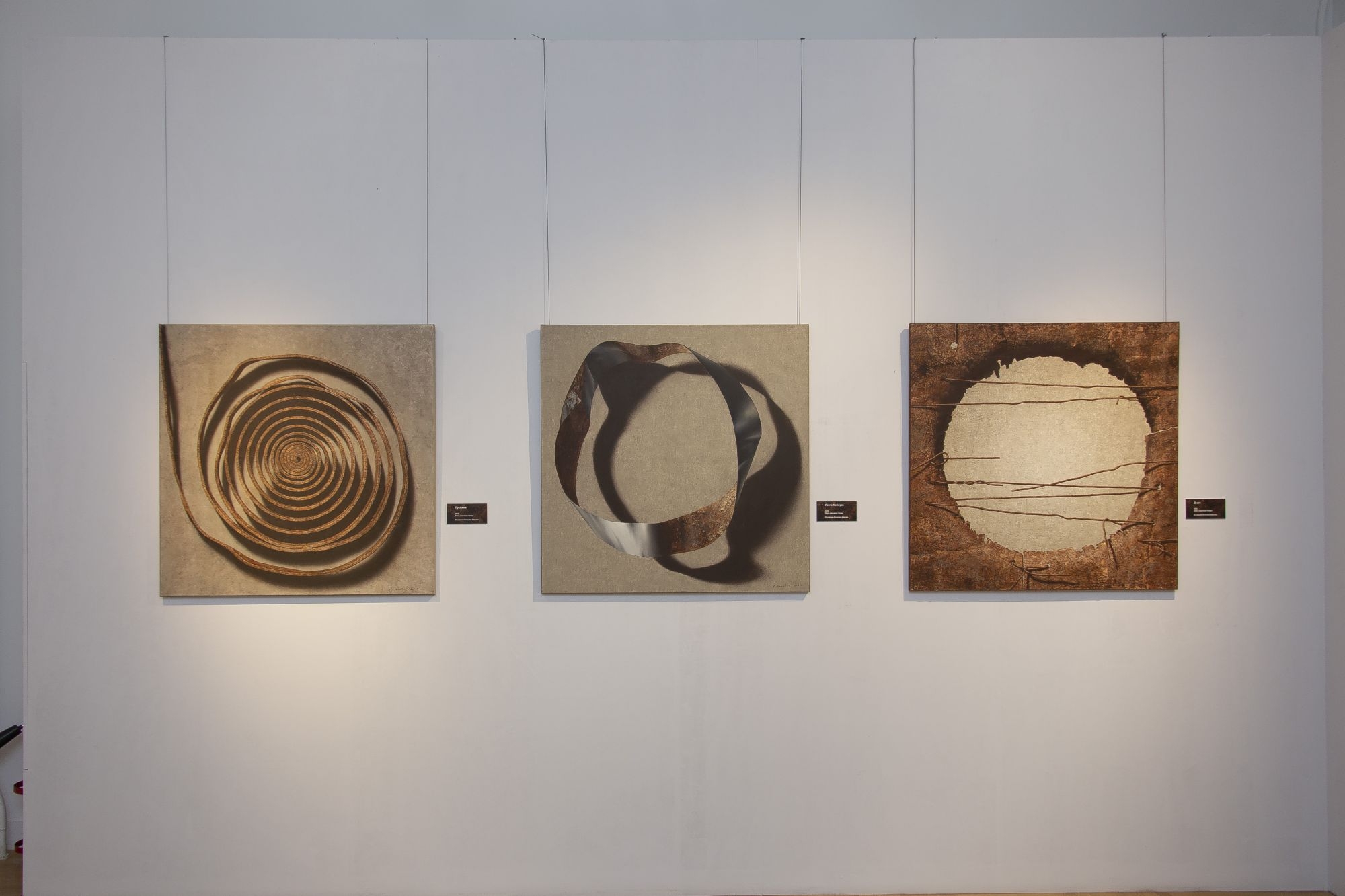Визуальный язык работ построен на контрастах: проржавевшее железо и мягкая падающая тень, блеск полированного металла и осеннего ковыля. Монохромная гамма и руинизированность поверхности заставляют зрителя смотреть на предметы сквозь призму времени. Художник сознательно фокусируется на деталях, которые кажутся незначительными. Именно по ним наше воображение воссоздает не только цельный образ, но и целую историю.
