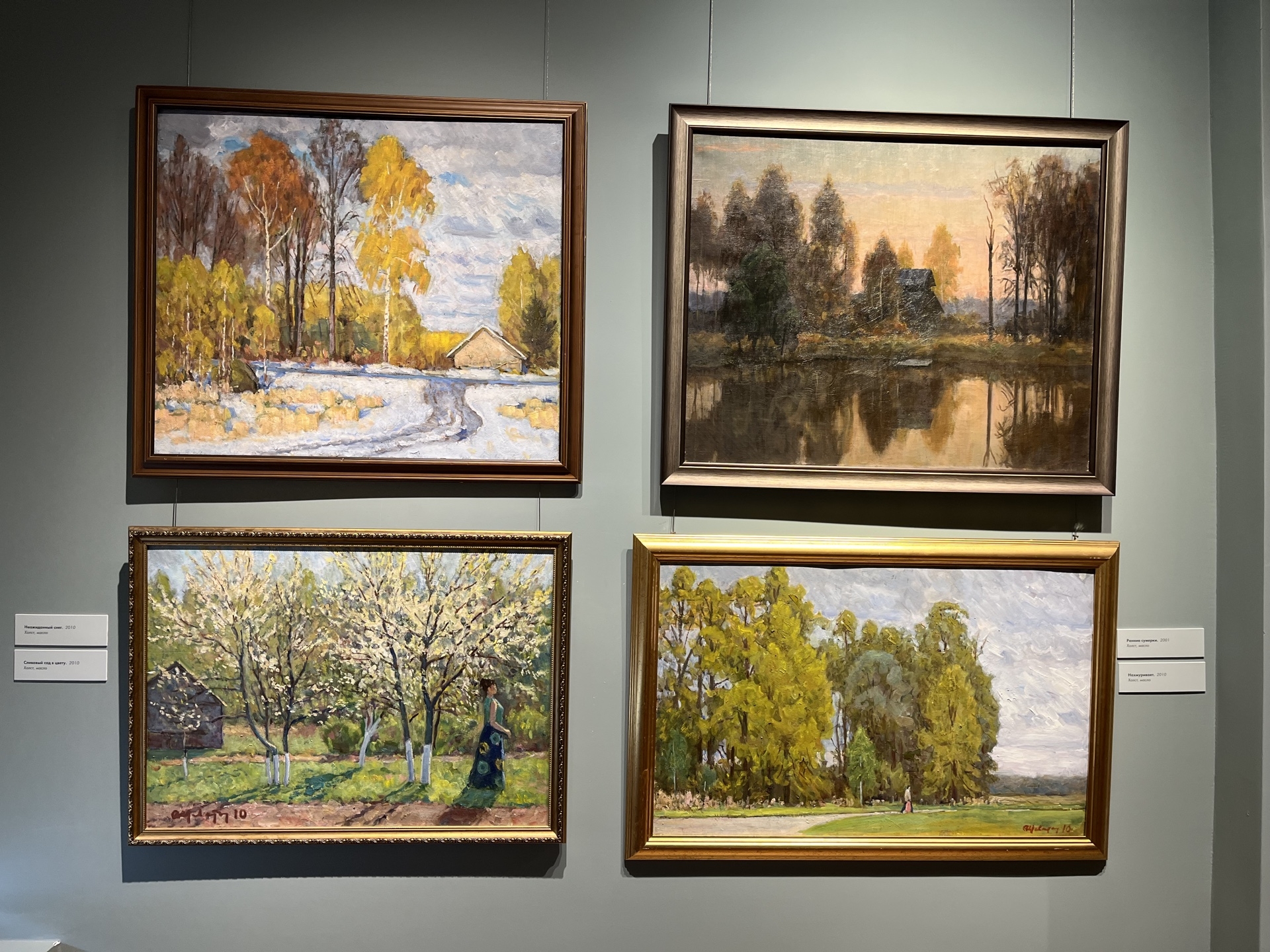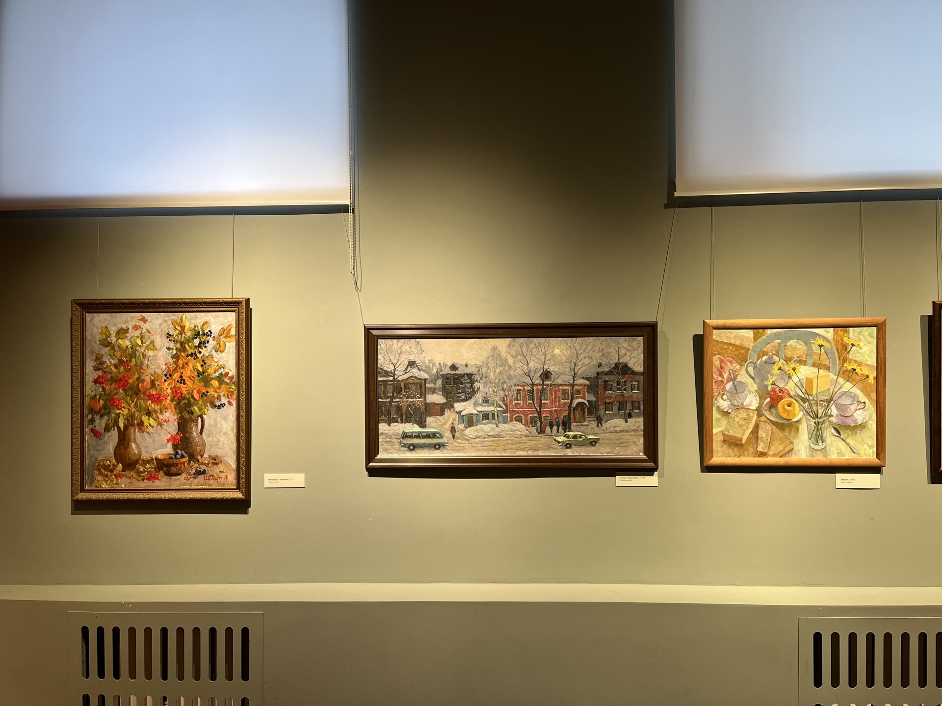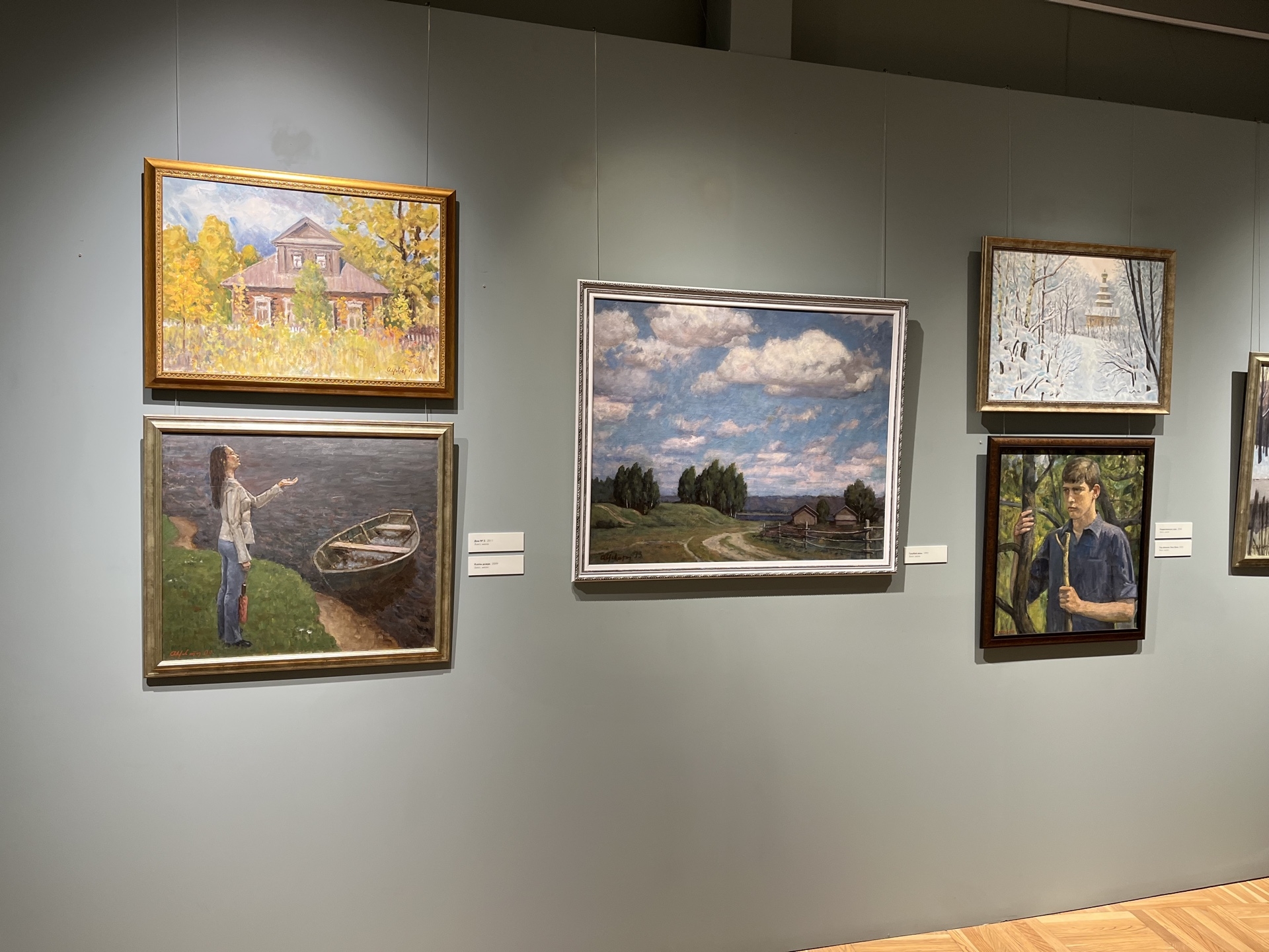 Хотя большая часть жизни художника была связана с армией, главной темой его творчества стало лирическое воспевание мирной жизни: природа в тонких состояниях, натюрморты с богатством цвета и фактур, портреты с глубоким проникновением в характер. Из военных работ на выставке представлена только одна — «Весна 45-го» (1993, собрание Нижегородского художественного музея). В ней художник создаёт образ долгожданной Победы: девушки наслаждаются миром и полны юных надежд. И всё же зритель ощущает щемящую хрупкость и беззащитность тех, кто прошёл через войну.